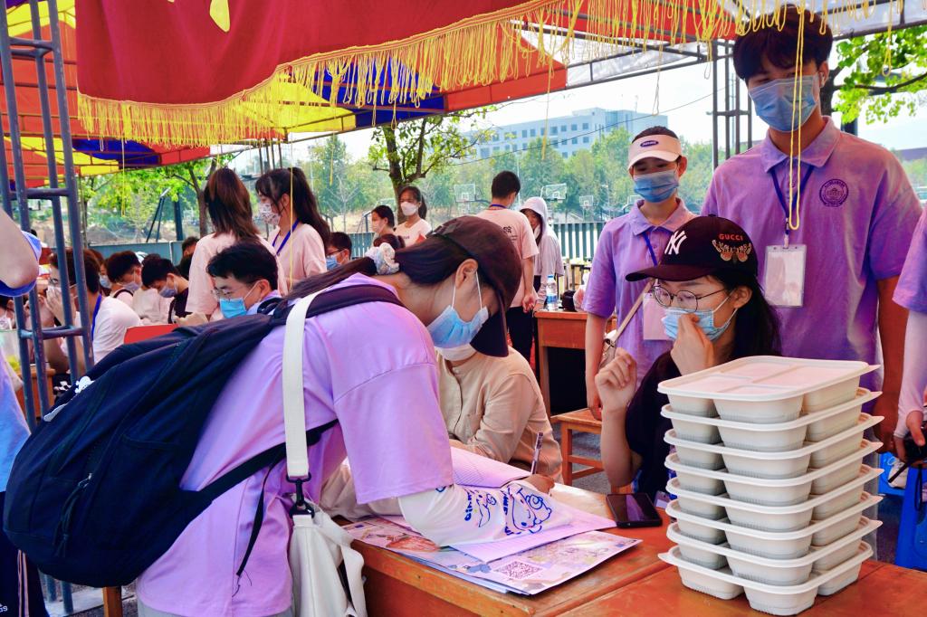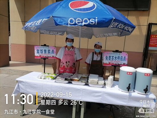 为迎接新同学的到来,学校饮食服务中心提前做好各项物资储备,确保餐饮供应安全、卫生、充足。迎新前后,员工们为全校师生和新同学们奉上了热情、温馨的服务,在防控防疫错峰就餐的情况下,校园内所有食堂延长了供餐时间,并在报到期间为新同学们提供免费茶水供应和误餐盒饭供应。