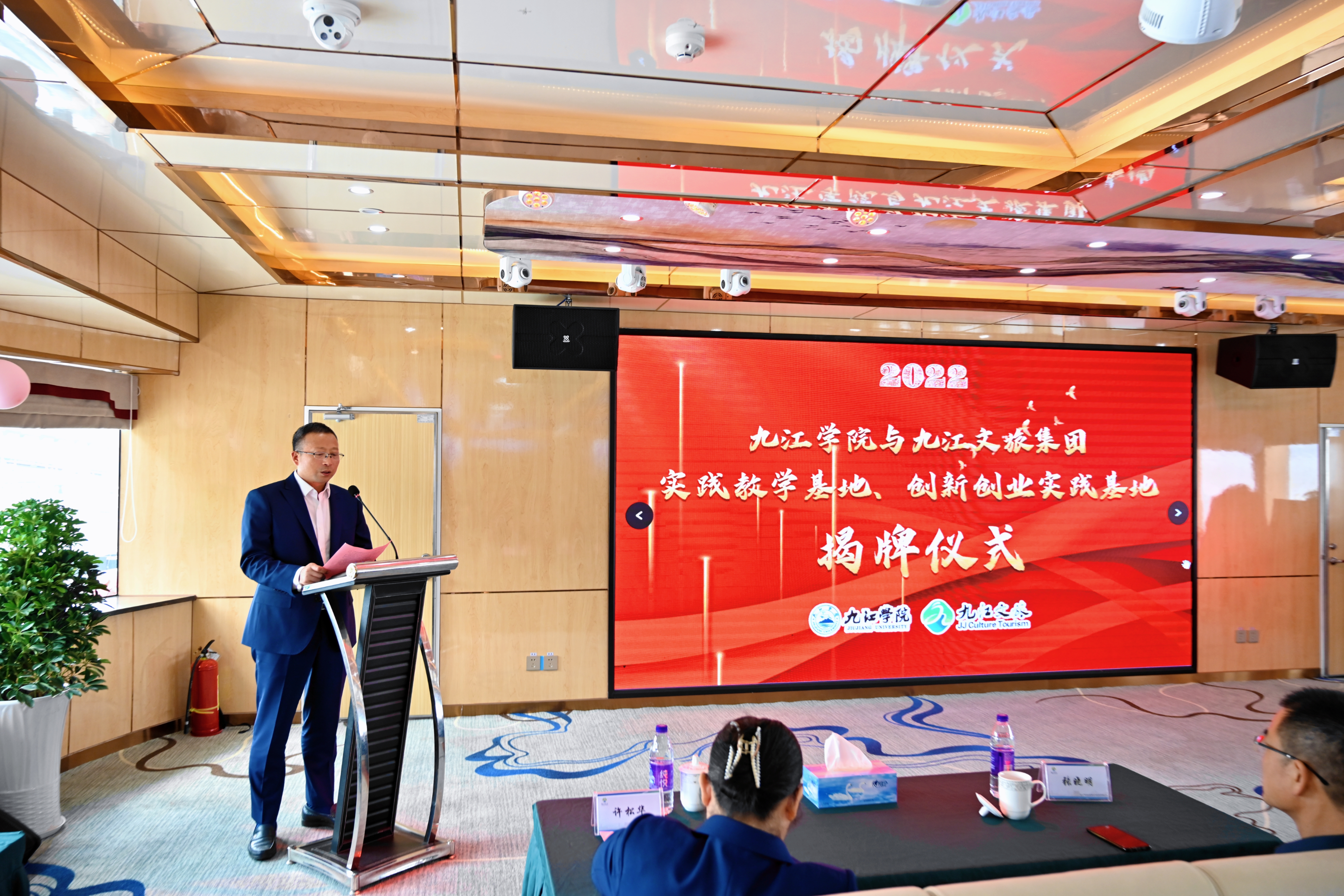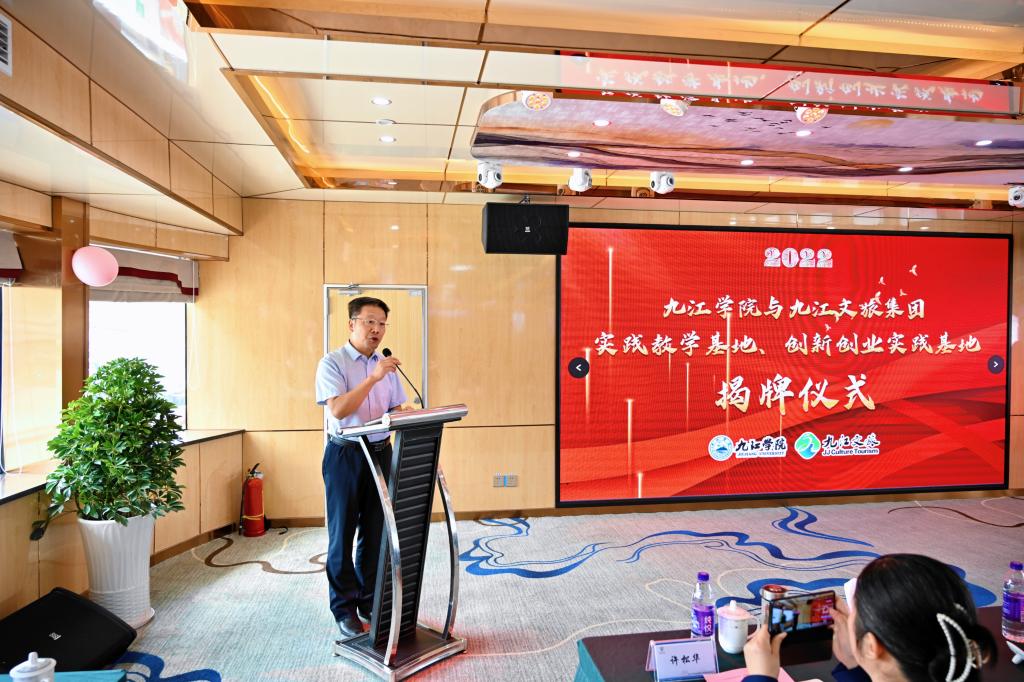 9月28日上午,贝博官网与九江市文旅集团共建实践教学基地、创新创业实践基地揭牌仪式在浔阳江号邮轮上成功举行。贝博官网副校长严平,九江市文旅集团党委书记、董事长王叙宇,贝博官网教务处、产学研办、创新创业学院、建工学院、旅游与地理学院、体育学院、管理学院、外语学院、国际交流学院、计算机与大数据学院、文学院、艺术学院负责人等出席揭牌仪式。仪式由文旅集团党委副书记、总经理许松华主持。