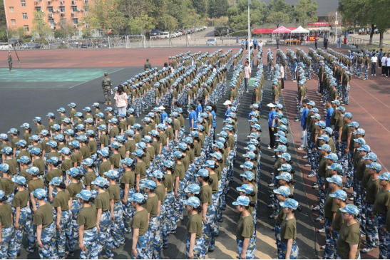 军训场上纪律严明、青春洋溢,6000余名在校的2022级新生在教官的带领下正斗志昂扬地进行训练,嘹亮的口号声在场地上此起彼伏。