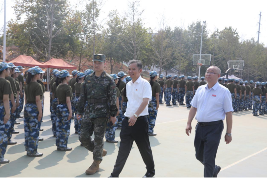 每到一个连队,赵伟和陈小林都向教官和同学们问好,亲切慰问正在执行军训任务的教官们,对他们的辛勤付出表示衷心的感谢和崇高的敬意;勉励新生服从安排、严格训练,培养吃苦耐劳、奋勇争先的精神,不断增强纪律观念和团队协作意识,增强国防观念和国家安全意识,传承红色基因,提升综合素养。