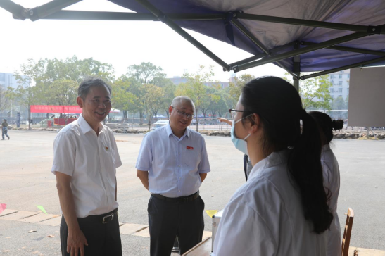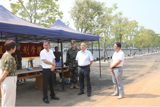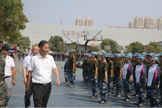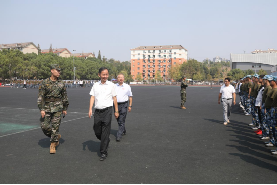 赵伟和陈小林还慰问了在军训场上的教职工,叮嘱他们关心和爱护同学们的身心健康,同时要求学校相关部门大力做好后勤保障工作。