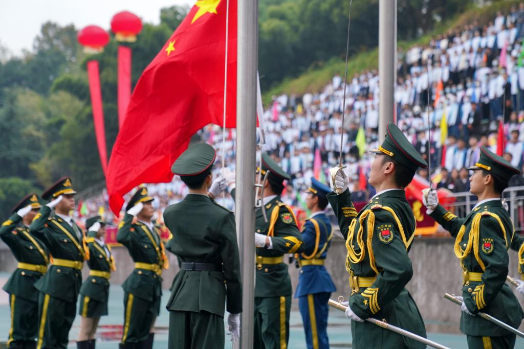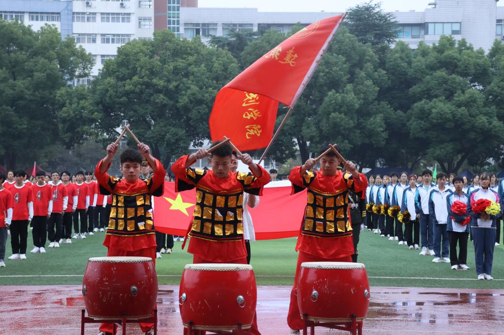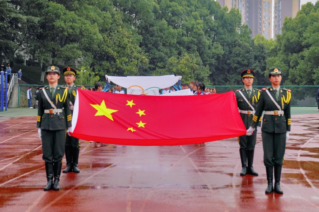 入场仪式结束后,国旗班的同学们迈着矫健整齐的步伐走向升旗台。庄严的国歌声响起,在全体师生的注目礼下,五星红旗冉冉升起,飘扬在学校的上空。
