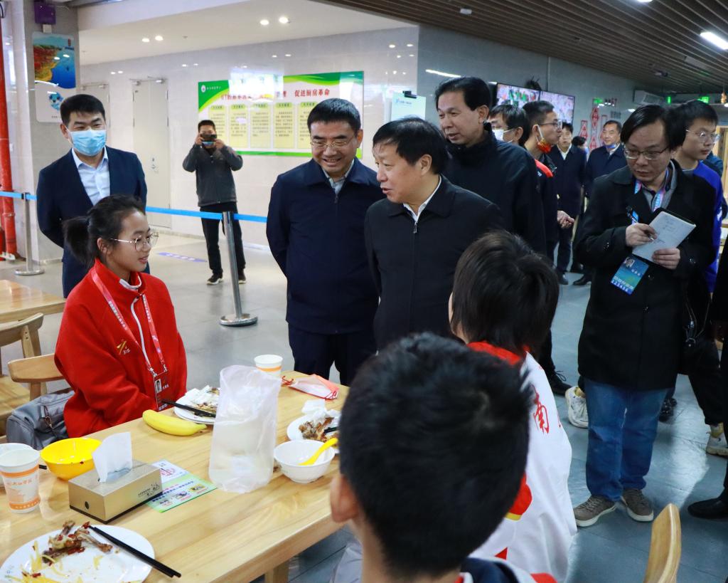 孙菊生一行深入到运动员食堂进行现场查看,了解运动员的饮食情况。“饭菜味道怎么样?吃得惯吗?”在运动员食堂,孙菊生一行与就餐的运动员亲切交谈。孙菊生对省运会运动员饮食保障和供应表示了充分肯定,希望BB贝博艾弗森官方网站饮食服务中心借助服务省运会契机,全面提升饮食服务水平。