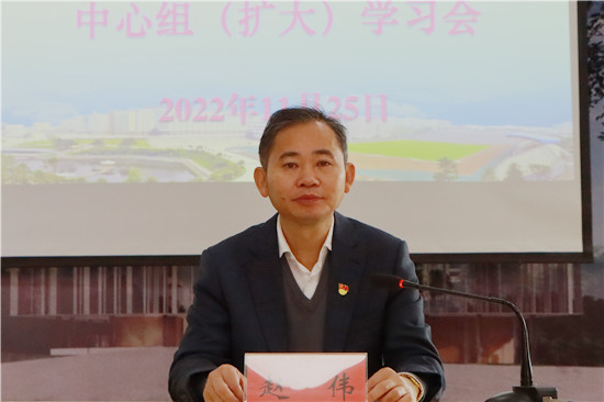 11月25日,校党委理论学习中心组举行2022年第九次(扩大)学习会,专题学习习近平法治思想。党委书记赵伟主持会议并讲话,强调要深入学习宣传贯彻党的二十大精神,深刻领悟习近平法治思想的精髓要义,全面推进依法治校、依法治教,推进学校治理体系和治理能力现代化,努力推动学校事业发展不断迈上新台阶。