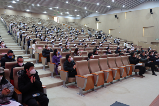 赵伟代表学校党委向二附院全体员工们致以新年祝福与诚挚问候。他指出,两年来,在市委市政府、濂溪区和市直各级部门大力支持帮助下,二附院全体员工和承建单位建设者们夜以继日,夙夜奋战,一所园林化、智慧化的三级综合性教学医院拔地而起。自成立以来,医院以服务地方高质量发展为己任,保障人民群众卫生健康,积极开展送健康进社区活动、成立核酸采样队助力全市全民核酸检测,紧急驰援修水疫情防控,充分展现了二附院人医者仁心、敢于担当的风采。
