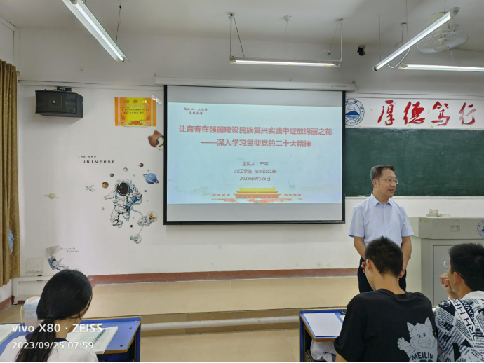 9月25日,贝博官网2023级新生迎来了进入大学后的第一课。校领导李明斌、陈小林、王万山、夏启国、严平、查振华、李广欣、王殿元、李松志走上讲台,围绕深入学习贯彻党的二十大精神、习近平总书记视察江西重要讲话精神等内容,为新生讲授了大学第一堂思政课,勉励广大新生奋进新征程、建功新时代,为实现中华民族伟大复兴贡献青春力量。