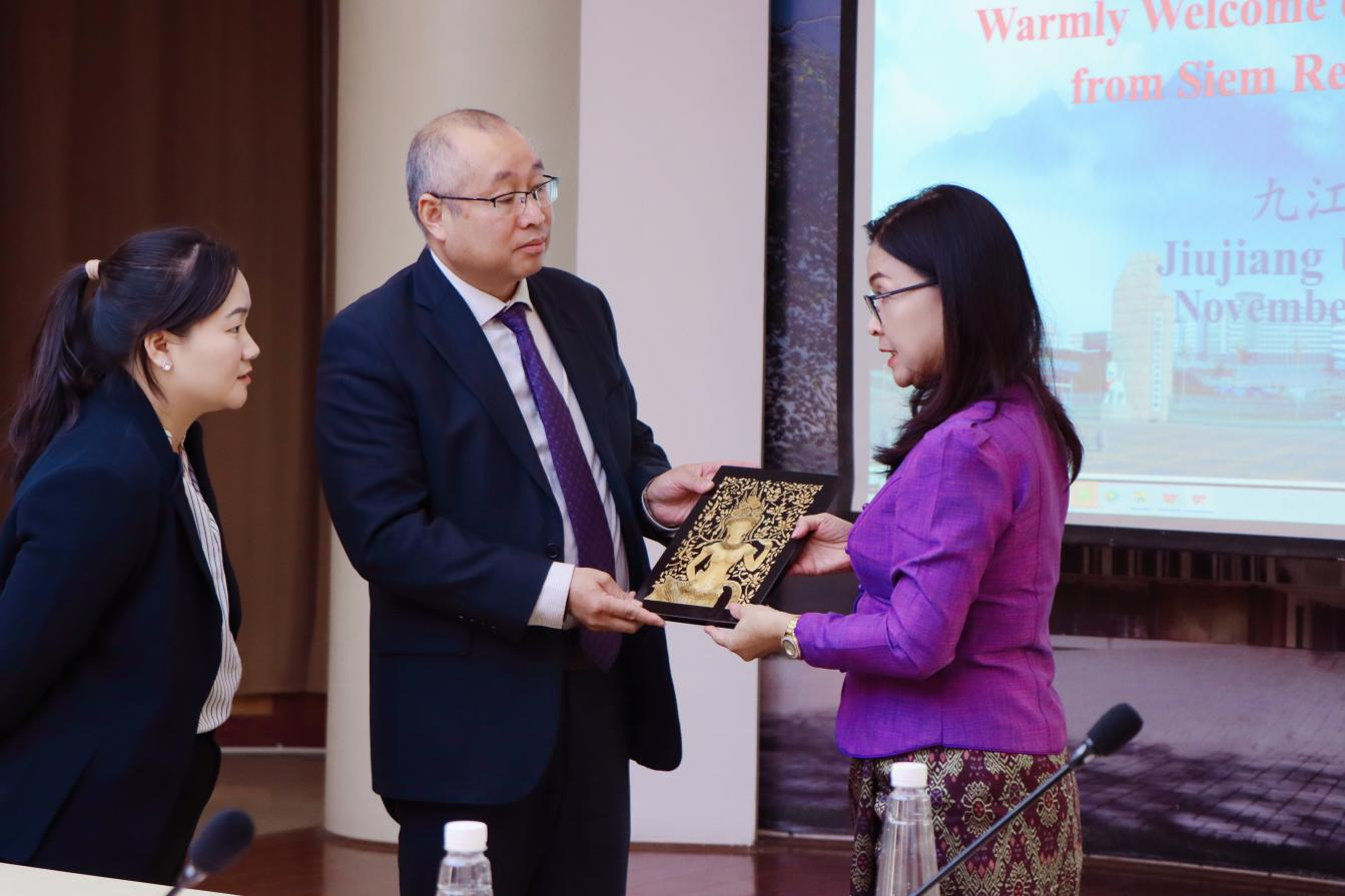 11月25日下午,柬埔寨暹粒省副省长育索毗率代表团一行6人到访贝博官网,校长陈小林亲切会见了育索毗一行。江西省外办二级巡视员黄美玲,九江市政府办公室,贝博官网国际合作交流处、国际交流学院、旅游学院和柬埔寨研究中心有关负责同志参加了座谈会。