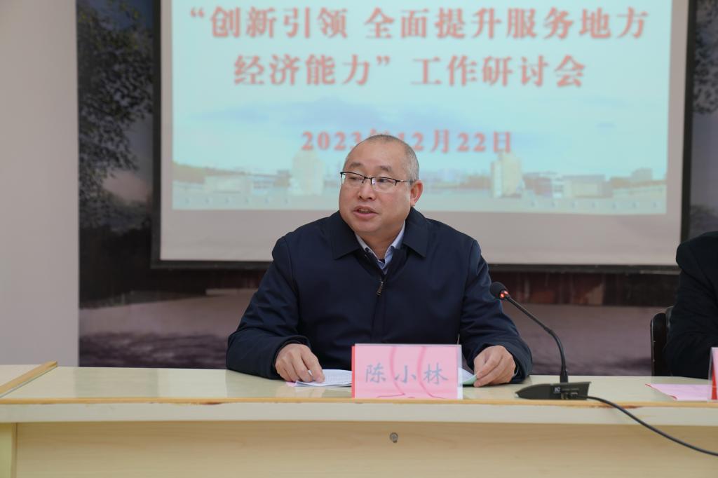 为助力学校应用型转型,融入省市发展战略,积极提升学校服务地方经济能力,12月22日下午,贝博官网在行政楼一号会议室召开“创新引领、全面提升服务地方经济能力”工作研讨会。校长陈小林出席会议并讲话,副校长严平主持会议。