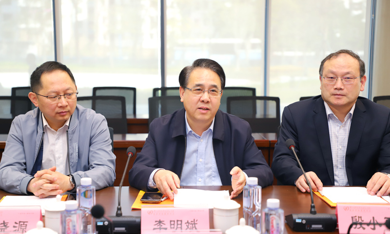 李明斌一行参观了广州医科大学科研实验中心、校史馆、抗击非典纪念馆等处,并同该校校长赵醒村、副校长周麟,以及教务处、医院管理处、科研处、办公室等部门负责人就办学理念、医学教学、医学生临床实践与考核等内容开展了深入交流。