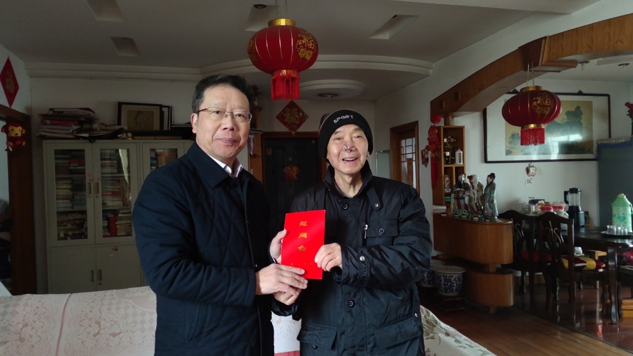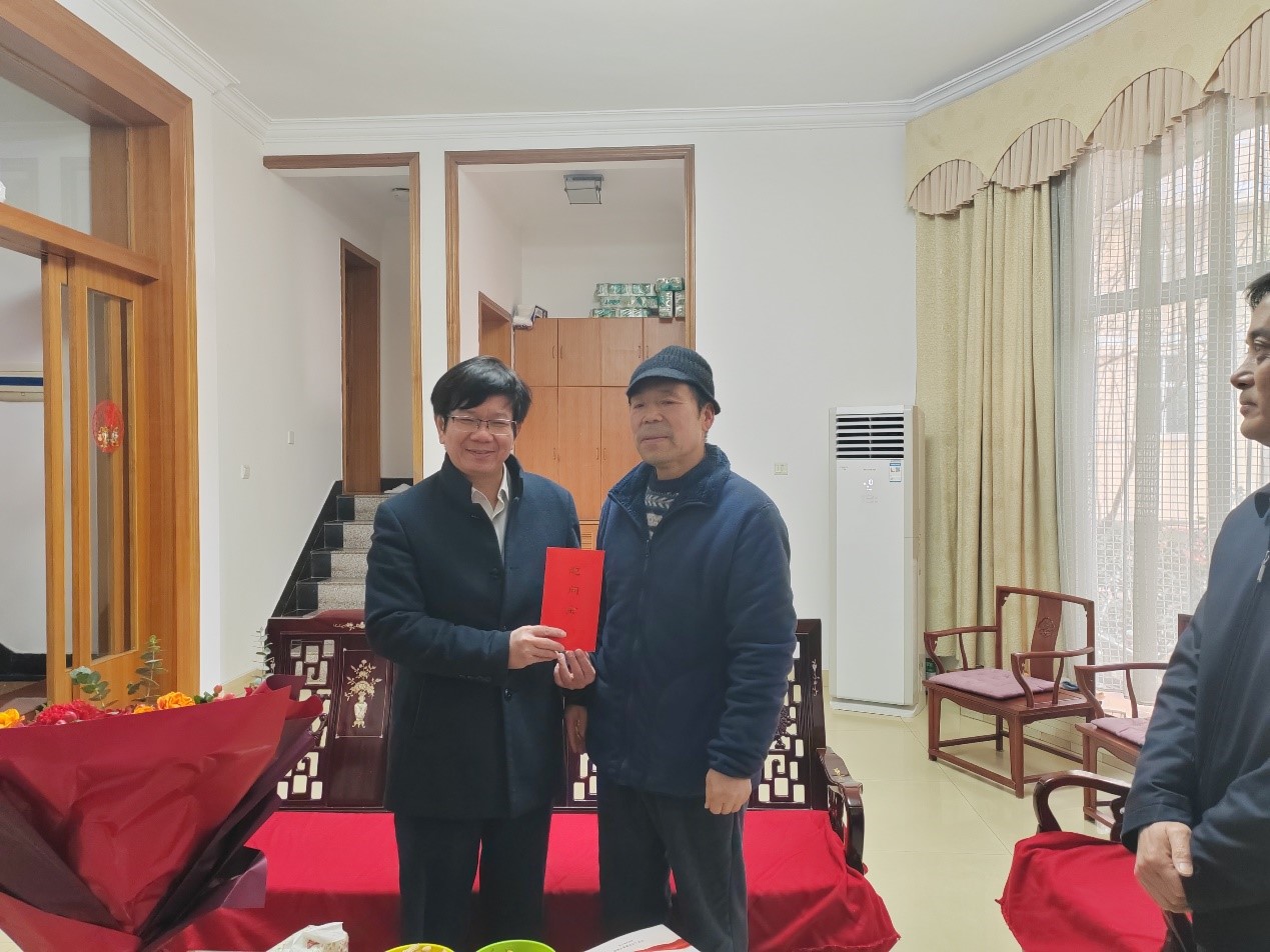 受学校党委委托,离退休人员工作处负责人代表学校党委和校行政走访慰问原教育学院退休老领导。