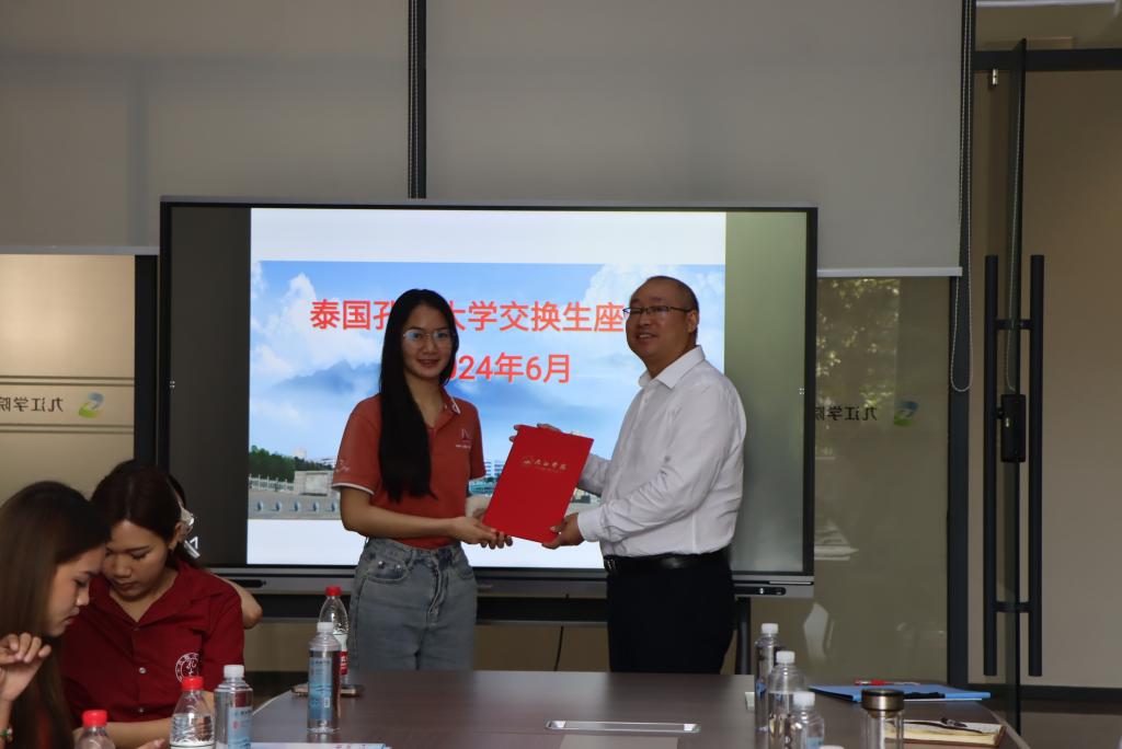 6月6日上午,泰国孔敬大学交换生座谈会在大学科技园举行。校长陈小林出席座谈会,为交换生颁发结业证书。副校长王万山、国际交流合作处和国际教育学院负责人出席活动。