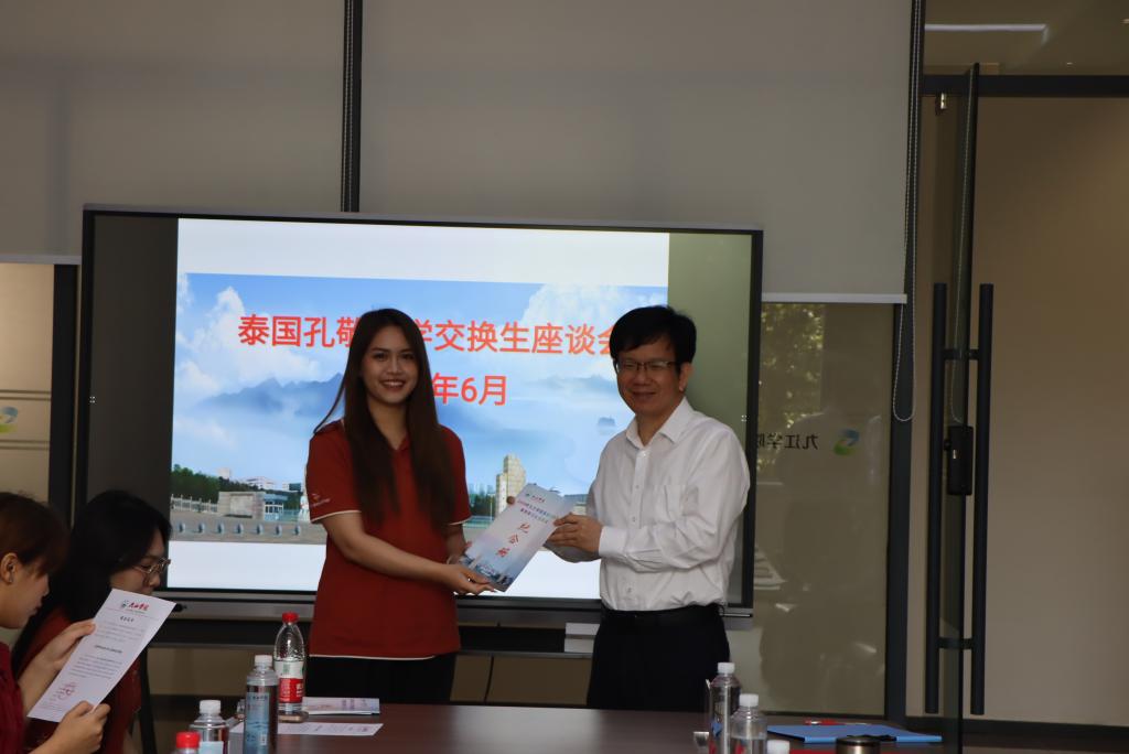 座谈会上,11名来自泰国孔敬大学的交换生向校领导汇报了在校学习和生活的心得体会,纷纷表示学有所成,达成了学习预期的目标、实现了来华留学的梦想。为了表达对学校的感激之情,她们还把自己制作的在校学习生活纪念册赠送给了校领导。