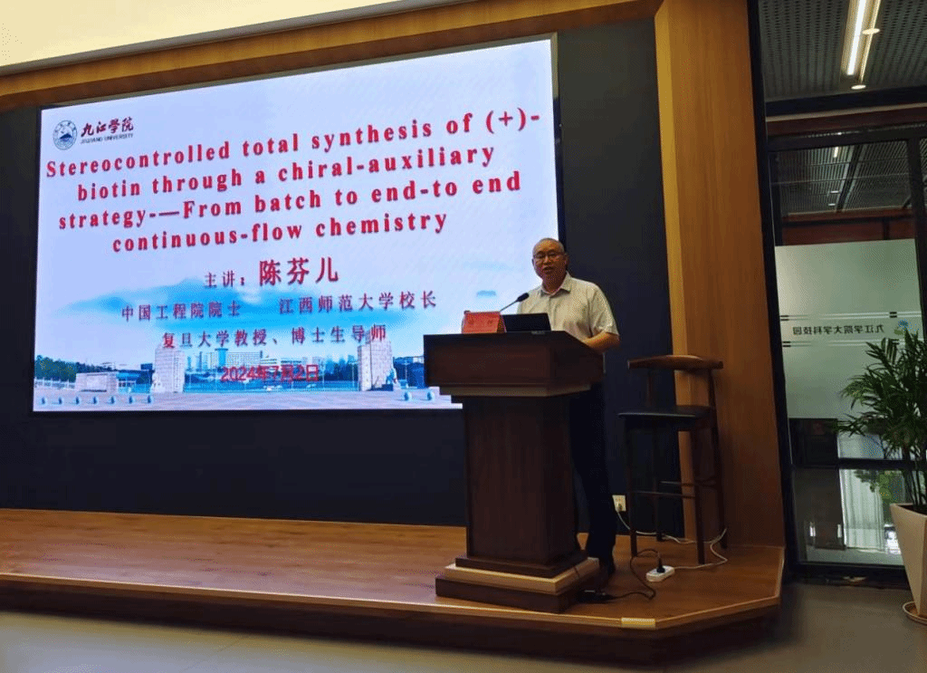 7月2日下午,中国工程院院士、江西师范大学校长、复旦大学博士生导师陈芬儿教授应邀为贝博官网师生作题为《Stereocontrolled total synthesis of (+)-biotin through a chiral-auxiliary strategy - From batch to end-to-end continuous-flow chemistry》的学术报告。报告会由校长陈小林主持,江西师范大学副校长项国雄,贝博官网副校长严平,化学化工学院、资环学院、临床医学院和药生学院相关专业师生在大学科技园报告厅现场聆听了院士的精彩报告。