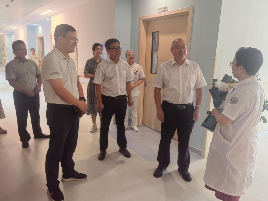 在学校第二附属医院,陈小林、雷志强走访慰问了妇产科、骨科、普外科等临床病区,与一线医生亲切交谈,询问他们的工作和生活情况,表达了对他们的亲切问候。