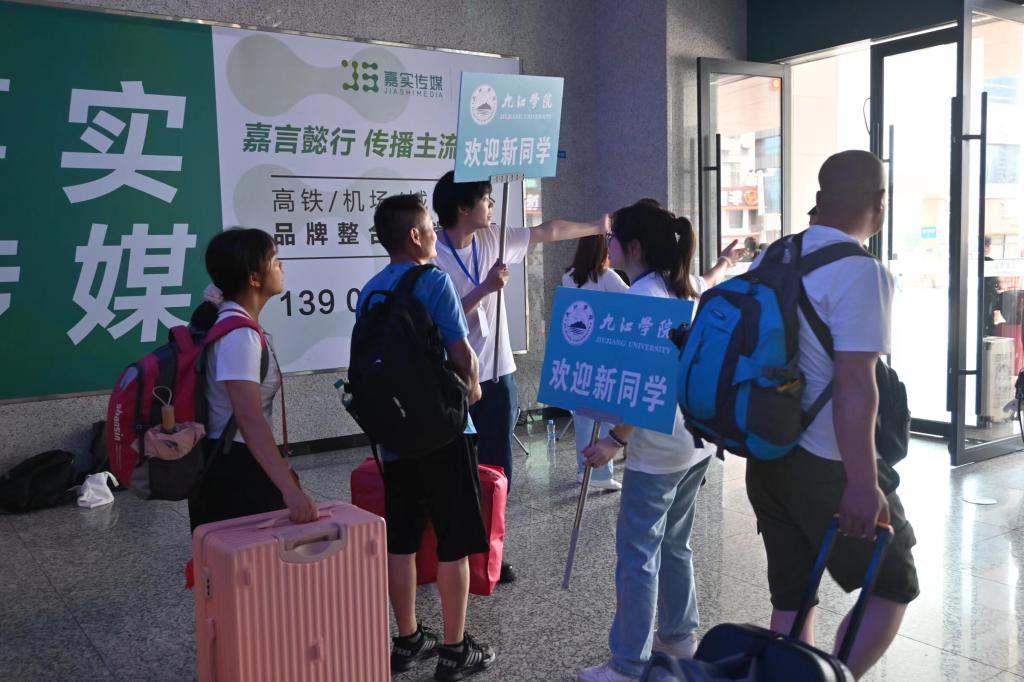 “BB贝博艾弗森官方网站的新同学来这边!学长学姐接你们去学校啦!”学校在九江站和庐山站分别设立迎新点,接站志愿者现场组织引导新生和家长有序乘坐迎新专车前往学校报到。在各个接站点,志愿者在指定的车站出站口举牌等候新生、协助新生及家长搬运行李,引导他们前往接待点进行信息登记。