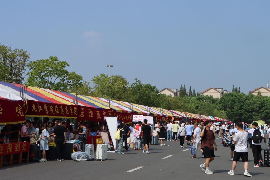 “家是哪里的?”“来九江有没有什么不适应的?”“报到都还顺利吗?”在报到现场,校领导与学生及家长亲切交谈,勉励同学们保持学无止境的状态,合理规划大学生活,在新的起点上,书写新的青春诗篇。