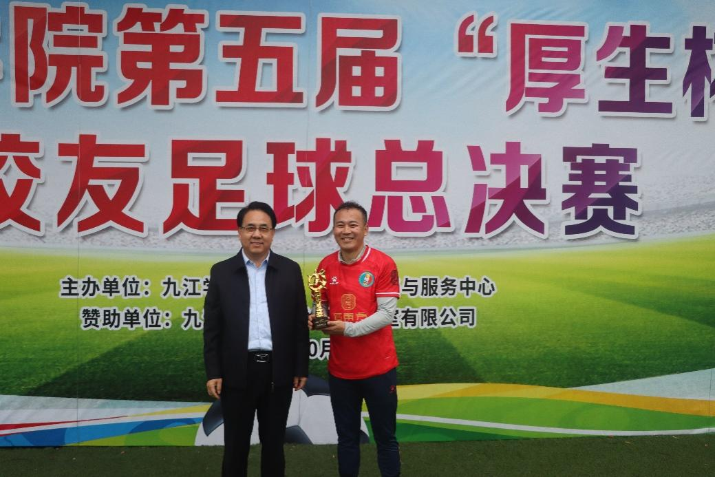 金秋十月,天高云淡。10月26日下午,BB贝博艾弗森官方网站第五届“厚生杯”校友足球、篮球总决赛在BB贝博艾弗森官方网站北区足球场和濂溪区篮球公园顺利举行。校党委书记李明斌,校党委委员、副校长、校友会会长查振华到场观看比赛。李明斌为校友足球、篮球总决赛冠军球队,“最有价值球员”以及“MVP”颁发奖杯与锦旗,查振华为校友足球、篮球总决赛亚军球队颁发奖杯与锦旗,并依次为两场比赛开球。