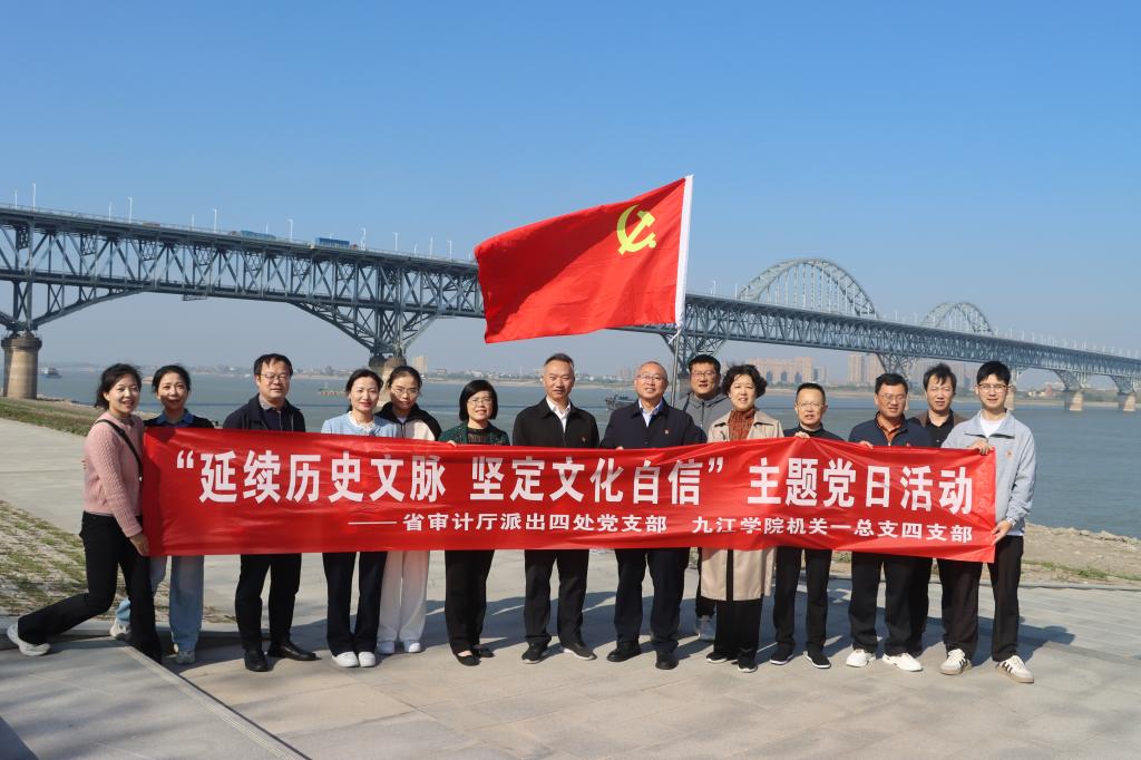 为深入学习贯彻习近平总书记考察江西重要讲话精神,切实体悟习近平新时代中国特色社会主义思想的实践伟力,增强传承中华优秀传统文化的责任感与使命感,11月7日,省审计厅派出四处党支部与BB贝博艾弗森官方网站机关一总支四支部联合开展了“延续历史文脉、坚定文化自信”主题党日活动。支部党员前往长江国家文化公园九江城区段,追寻习近平总书记在九江考察指导的足迹。