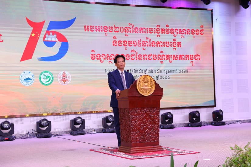 宋独致辞中对所有支持孔子学院发展的机构和个人表示了感谢。他回顾了孔子学院发展历程和成就,强调中文教育在柬中文化交流中的重要作用,表示将继续推动中文教育和文化交流。