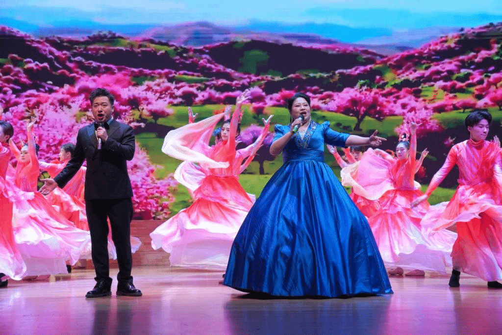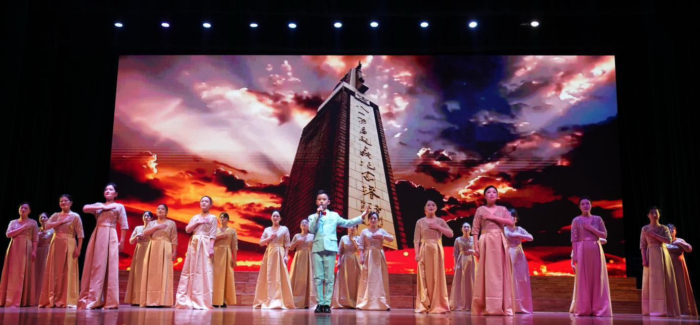 演出结束后,领导嘉宾上台与全体演职人员合影留念,现场洋溢着喜悦与感动。
