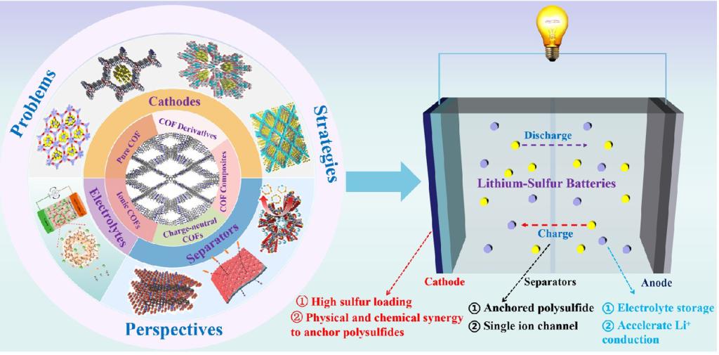 另外,本文还着重介绍了电中性COF、离子COF以及COF复合材料修饰隔膜后改善锂硫电池性能的策略,以期实现高能量密度。同时,分析了COF基电解液设计的策略,主要包括结构设计等。该论文为未来高性能锂硫电池COF基正极的设计和隔膜修饰的发展提供了新的视角。