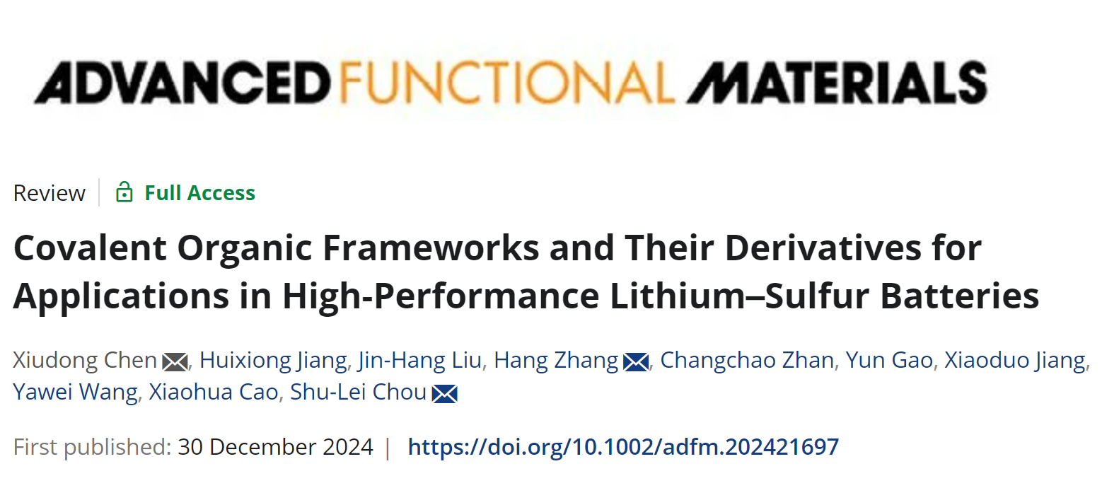 近日,BB贝博艾弗森官方网站化学化工学院陈修栋教授团队与温州大学侴术雷教授团队合作在《Advanced Functional Materials》(先进功能材料)上发表题为“Covalent Organic Frameworks and Their Derivatives for Applications in High-Performance Lithium-Sulfur Batteries”的综述性学术论文。这是贝博官网首次以第一单位在《Advanced Functional Materials》发表学术论文。