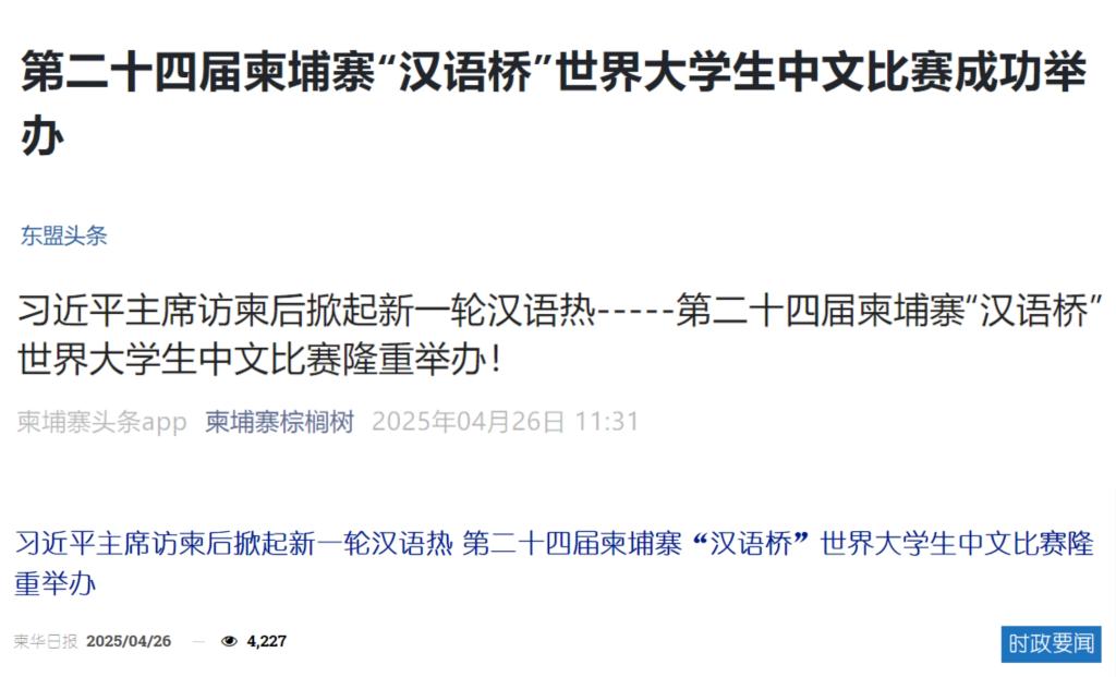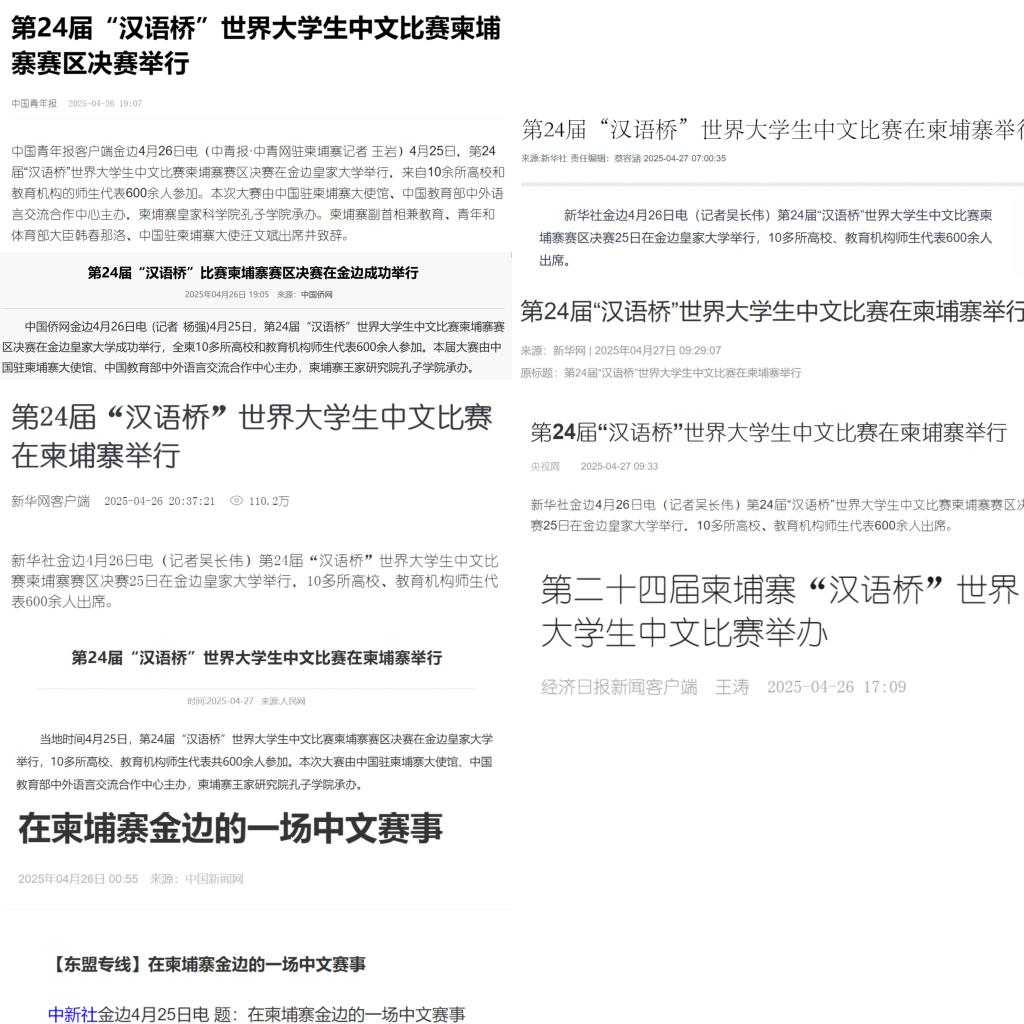 赛后,中柬两国主流媒体形成联动效应展开集中报道。新华社、人民网、中国新闻网、中国青年报、中国经济日报等权威媒体以专题形式详细报道了赛事亮点,突出展示了贝博官网孔子学院的核心作用;柬埔寨柬华日报、东盟头条、柬埔寨头条等本地媒体则聚焦比赛对本国中文教育水平提升的积极推动,称其为“青年语言能力与文化热情的重要展示平台”。各媒体的大力宣传,吸引了广大中柬人民的关注,其中新华网关于汉语桥的报道点击量超120万次,进一步提升了贝博官网孔子学院在中柬人文交流中的影响力。