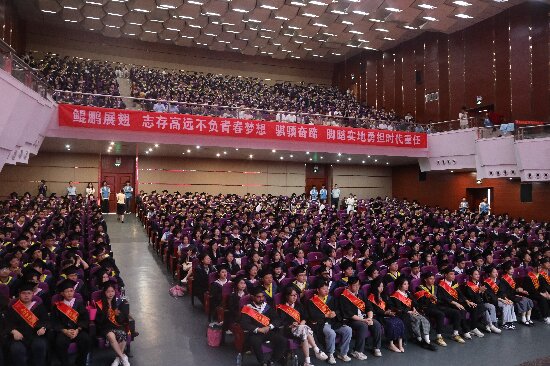 在热烈的掌声中,全场起立,奏唱国歌,毕业典礼正式拉开帷幕。