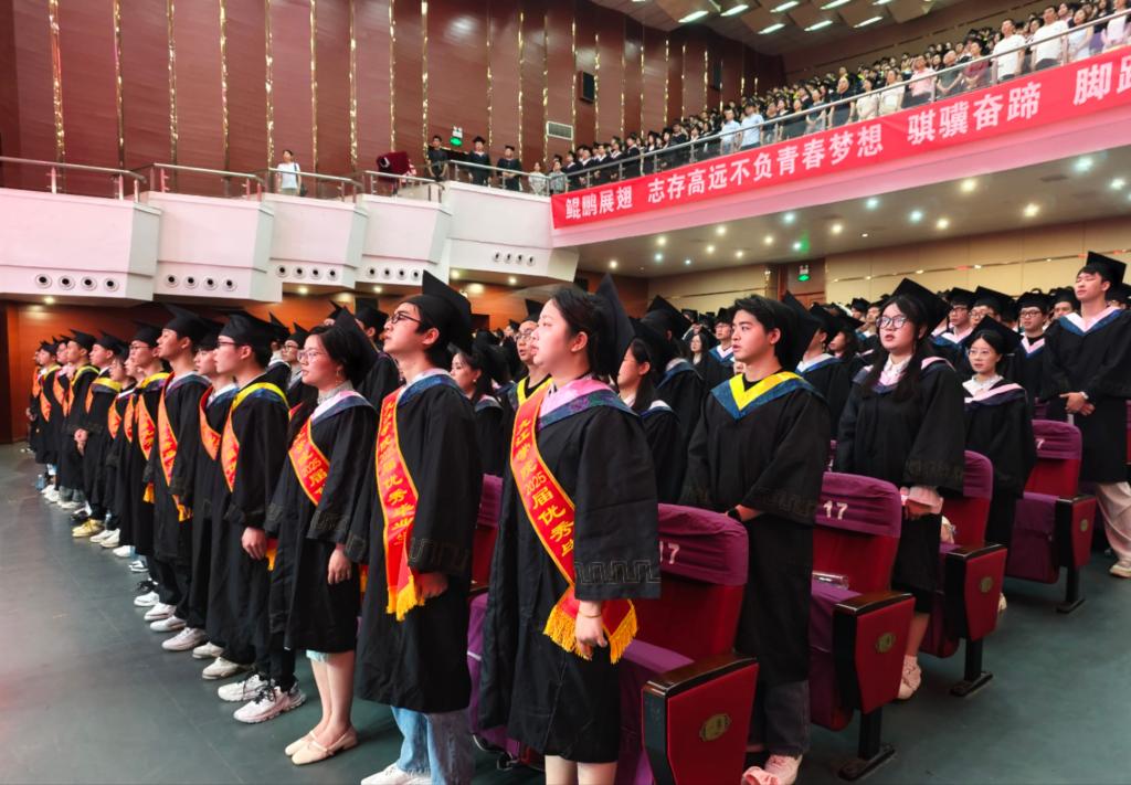 伴随着激昂的音乐,校领导为毕业生代表颁发毕业证书和学位证书,并为他们一一拨穗正冠。每一份证书,都凝结着学子们勤学不辍的汗水与闪光的青春印记。