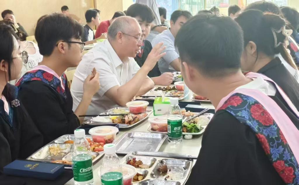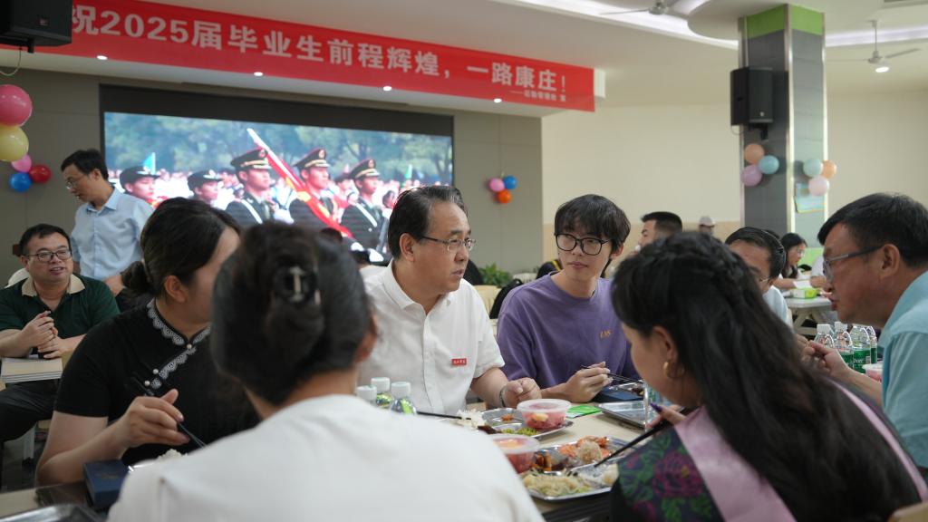毕业典礼结束后,学校在学生食堂为全体毕业生们准备了毕业午餐和定制毕业纪念品,校领导们来到学生三食堂,与同学们共进午餐、畅谈未来,为2025届毕业生送别。