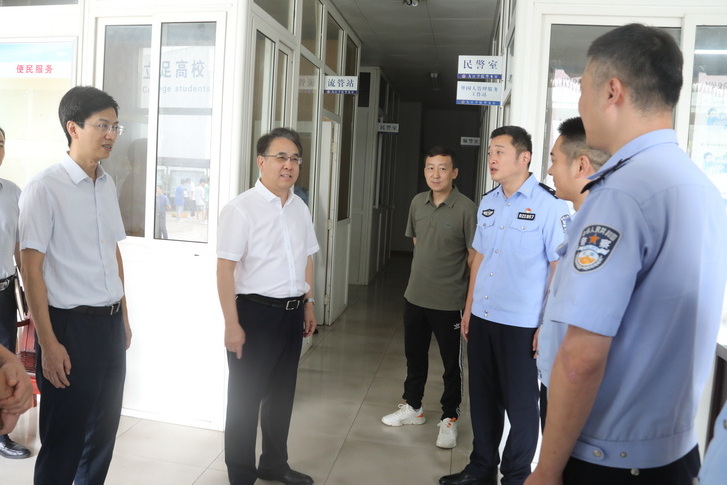 检查期间,李明斌一行实地查看了建工学院土木实验楼工程结构实验室、学生一食堂、学生宿舍、学校警务室、超市等多个重点场所,详细听取了校园安保、食品卫生管理和实验室管理等情况汇报。