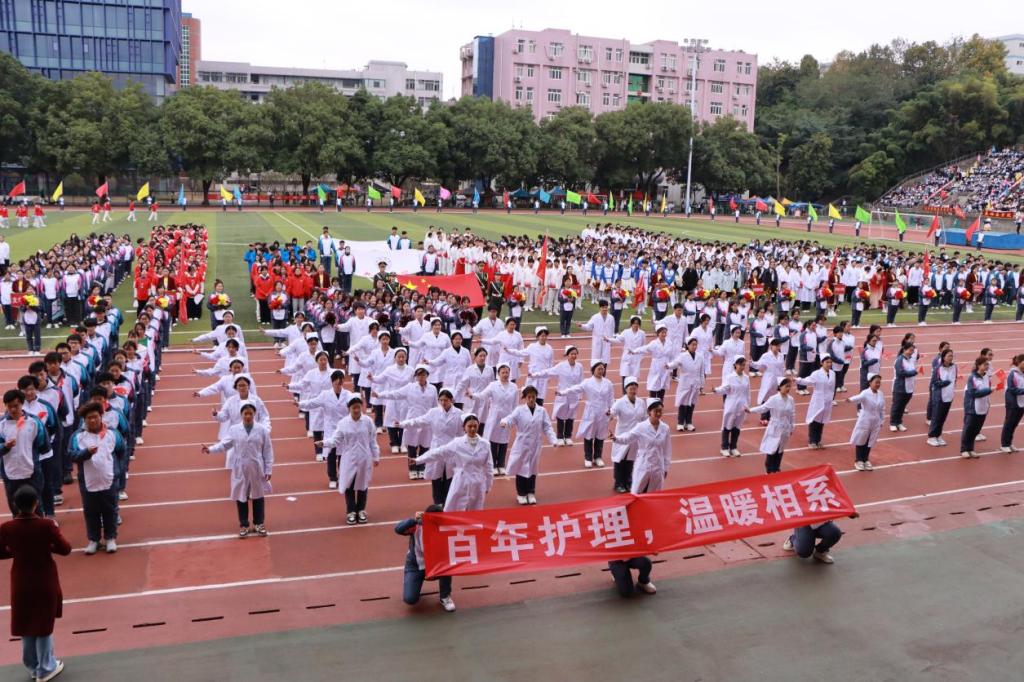 旌旗招展,装点浔城秋色!鼓乐和鸣,沸腾九院青春!10月22日上午8时,BB贝博艾弗森官方网站第二十四届田径运动会在南区田径场隆重开幕。校党委书记李明斌出席,校田径运动会组委会主任、副校长查振华宣布运动会开幕,党委委员、副校长王殿元、鲁卫东、雷志强,党委委员、纪委书记刘波,党委委员刘平、杨杰、肖国丰出席开幕式,各二级学院党政负责人、各职能部门负责人、全体运动员、裁判员及师生代表共同参与。开幕式由党委委员、副校长吴维勇主持。