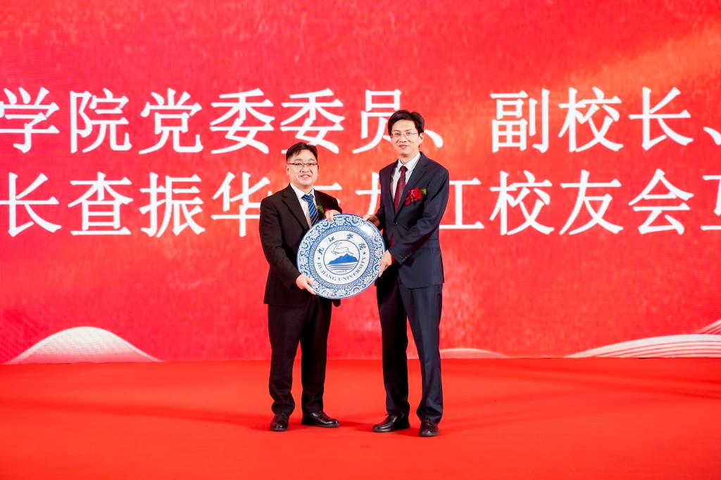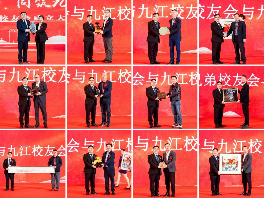 成立大会上,学校与各兄弟校友会分别同九江校友会互赠纪念礼物,现场情谊交融,共同祝愿母校事业蒸蒸日上,校友网络更加紧密。
