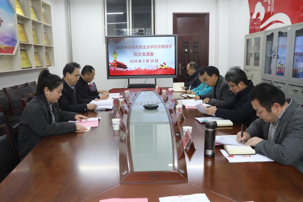 按照学校统一部署,根据校党委《关于开好2025年度处级党员领导干部民主生活会的通知》要求,2月28日下午,马克思主义学院在香远楼2052会议室召开了2025年度处级党员领导干部民主生活会。校党委书记李明斌,党委委员、组织部部长杨杰到会指导。学院党委班子成员参加会议。