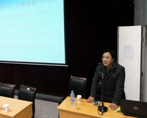 BB贝博艾弗森官方网站医学部副部长向维聂教授从医学教育的现状、临床医学专业认证的必要性及意义、临床医学专业认证的具体流程及认证的计划、目前贝博官网临床医学专业认证亟待解决的问题等方面进行专题讲解,并结合各科室及教师需要进行准备的材料进行专题辅导。基础医学院教务科、学生科、实验中心、人体解剖学教研室和生化教研室代表进行表态性发言,表示要主动配合,凝练特色和亮点,做好专业认证工作。