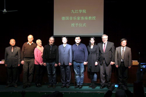 1月8日下午,艺术学院在香远楼报告厅举行了德国音乐家团队客座教授授予仪式。艺术学院院长吴维勇、党委书记王春生、副院长欧阳时来出席了授予仪式,各科室负责人、艺术学院全体师生参加了仪式。仪式由艺术学院副院长欧阳时来主持。