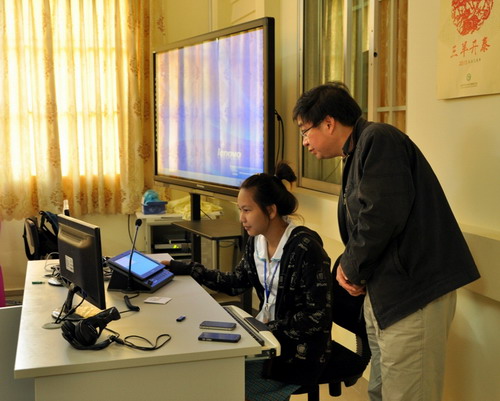 孔子学院学员在陈先平的指导下使用电子图书馆