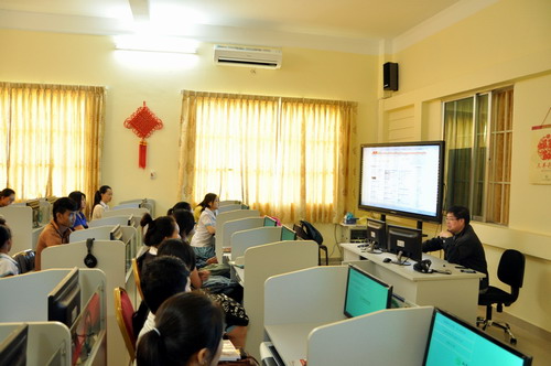 参加完第9届全球孔子学院大会回来后,谢莫尼勒院长积极推进柬埔寨王家研究院孔子学院利用电子图书资源的工作,在孔子学院铺设新的网线,印制张贴孔子学院数字图书馆、BB贝博艾弗森官方网站电子图书馆使用方法,并将和东南亚电信(柬埔寨)有限公司共建柬埔寨网络孔子课堂, 为柬埔寨偏远地区学生开设网络汉语课程。