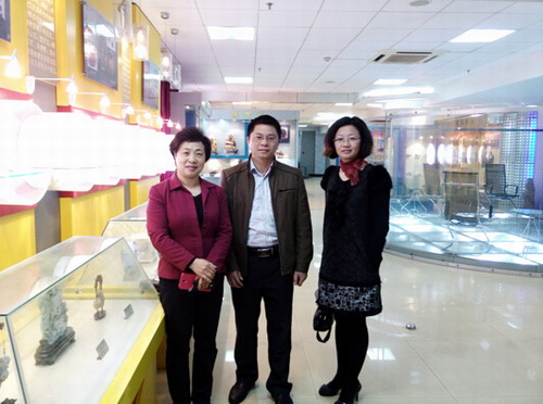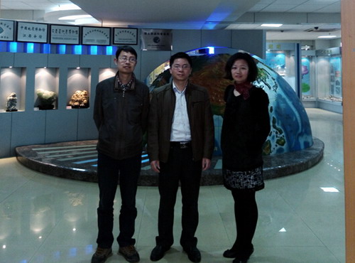 调研小组受到江西省地质矿产勘查开发局彭局长和江西地质博物馆杨馆长的热情接待。杨馆长介绍了江西省地质博物馆基本情况,对各个展厅进行了详细介绍,包括展厅设计、建设、陈列标本等。李院长对彭局长和杨馆长的热情接待表示感谢,并介绍了此次调研的目的。李院长介绍了旅游与国土资源学院地质陈列室的建设情况,并希望今后能与省地质博物馆进行更多的交流和合作。调研结束,杨馆长代表省地质博物馆赠送了一批江西省地域特色的矿石标本,以表示对我院实验室建设的支持。