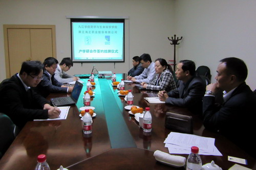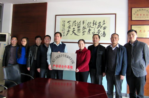 严书记一行分别与江西济民药业有限公司、苏州立新制药有限公司、苏州特瑞药业有限公司、浙江海正药业股份有限公司、浙江华海药业股份有限公司、台州海神制药有限公司等用人单位举行“产学研”合作基地签约挂牌仪式。