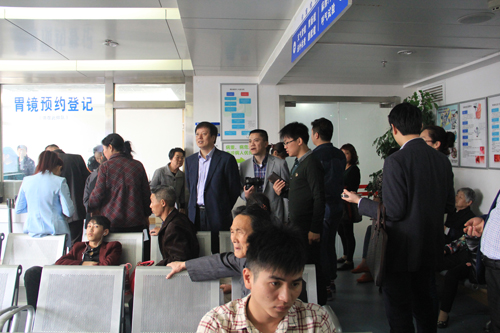 4月17日,由临床医学院/附属医院张志平院长带队,贾宗林副院长、刘英明纪委书记、胡志坚副院长,信息科、门诊部、财务科、总务科、学生科等部门负责同志一行赴南昌大学第一附属医院和南昌大学第二附属医院参观、学习交流,重点学习南昌“掌上医院”微信预约挂号等服务方面的工作经验。