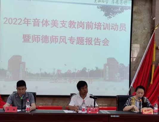 根据省教育厅工作部署,2022年秋季计划选派贝博官网2019级155名音体美专业师范生前往九江市下辖11个县(市区)51所农村小学进行实习支教。6月2日下午,学校在香远楼3楼报告厅举行2022年秋季音体美师范专业支教生岗前培训动员暨师德师风报告会。副校长陈春生出席会议并讲话。教务处负责人和相关学院负责教师、2019级实习支教学生共计160余人参加了会议。