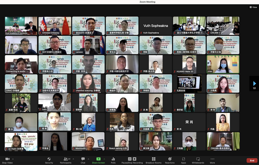 由于疫情原因,比赛在线上举行,同时在皇家科学院孔子学院设立线下主会场,对抽签、评分等情况进行同步现场直播。柬埔寨皇家科学院秘书长杨博(Yang Peou)、中华人民共和国驻柬埔寨王国大使馆公使衔参赞常健、中国银行(香港)金边分行行长刘道志等各级领导和各界代表百余人观摩比赛。