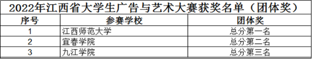 近日,第14届全国大学生广告艺术大赛(简称“大广赛”)江西省赛区公布获奖名单。来自贝博官网文学院、教育学院和资环学院的19件作品在入围的533件作品中脱颖而出,获得等级奖。其中,文学院学子获得一等奖4项、二等奖2项、三等奖8项;教育学院学子获得一等奖1项、二等奖2项、三等奖1项;资环学院学子获得三等奖1项。贝博官网在参赛的71所高校中以总分第三名的成绩获团体奖。此次大广赛省赛中,贝博官网学子的获奖等级和获奖数量,均为贝博官网参加大广赛省赛以来的历史最好成绩。