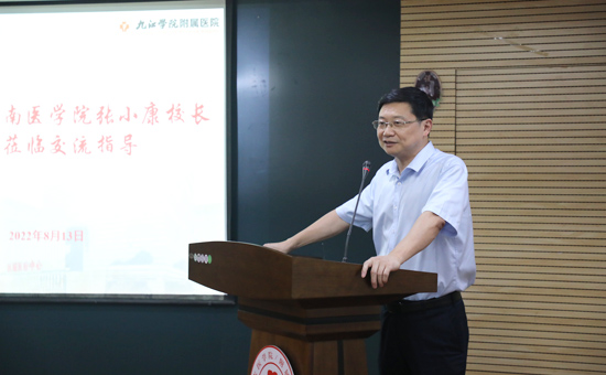 座谈会上,张小康简要介绍了赣南医学院及一附院近年来的快速发展和取得的成绩。他表示,赣医和九院渊源久远,近年来又有着许多实质性的人才交流和学术交流,今后双方还应巩固成果,要加强在医教研防多个领域的沟通协作,促进医学教育教学事业蓬勃发展,努力为医院、为社会培养出更多优秀的医学实用人才。