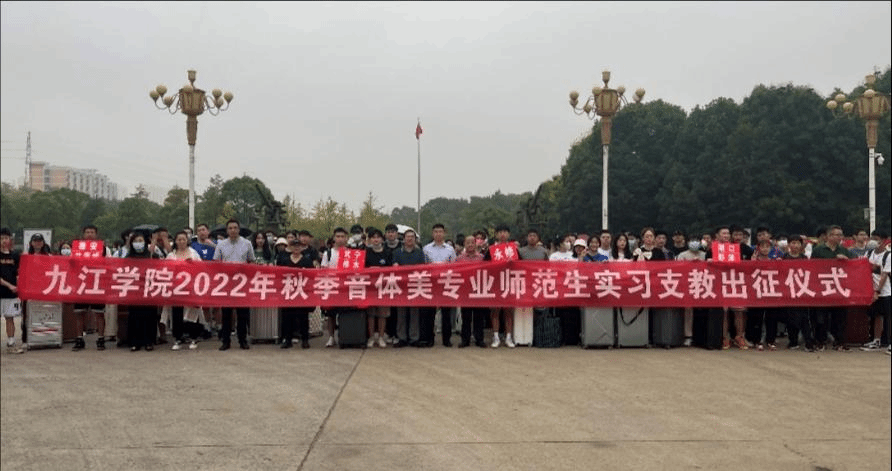 根据省教育厅统一部署,8月30日上午,贝博官网举行了2022年秋季音体美专业师范生实习支教出征仪式,此次贝博官网音体美支教活动共安排155名音体美专业师范生,前往九江市十一个县(市区)51所乡村小学开展实习支教活动。教务处、艺术学院、体育学院负责人和专业带队老师和全体实习支教学生参加了出征仪式。