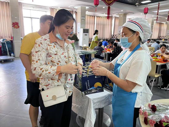 据了解,为做好本次活动的准备工作,开学以来,后勤管理处充分准备,为九院师生精心制作万余枚“校徽”定制月饼,并在中秋节期间免费发放,以送月饼的方式传递校园温情,营造了“厉行节约,反对浪费”和尊师重教中华传统文化的校园氛围。9月9日中午开始,凡是在教工餐厅用餐,并实现光盘的教职工,工作人员就为他们奉上了鲜花与月饼的组合伴手礼。9月10日,校园内各个学生食堂内,早已雀跃欣喜的同学们迫不及待地拿着“光盘”兑换着他们的专属定制“校徽”月饼。