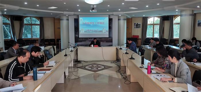 10月11日下午,学校在行政楼一号会议室召开10月份学生工作会,副校长王殿元出席会议并讲话,各二级学院党委副书记、学生科负责人参加会议。