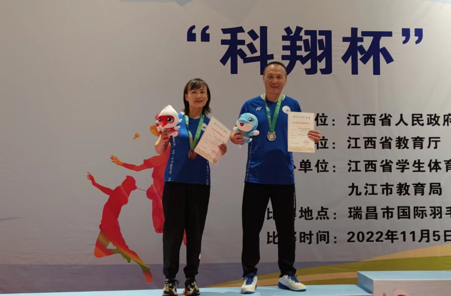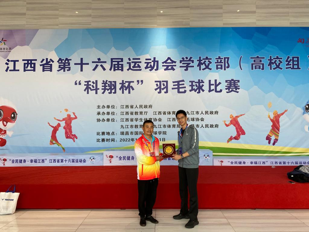 11月10日,江西省第十六届运动会羽毛球比赛(学校部高校组)在瑞昌市国际羽毛球学院顺利落下帷幕,贝博官网教工代表队获得了本科院校组混合双打第二名和第四名的好成绩。
