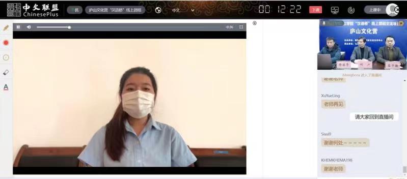 本次庐山文化营项目为期9天,课程以庐山文化知识为主题,以“录播+直播”的形式进行,内容涵盖文化类和语言类两部分。该项目旨在保持海外青少年在疫情期间的中文学习热情,满足其了解中国语言文化的需求,拓展外国学生对中国文化和江西省情、九江市情的认知,提高海外学习者了解中国及中国文化的积极性。